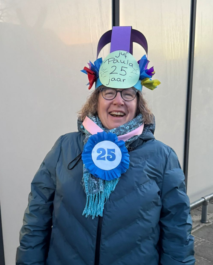 Woensdag 8 januari was het feest op Het Startpunt want Juf Paula vierde die dag dat ze 25 jaar in het onderwijs zat. ’s Morgens werd ze feestelijk en met veel bloemen onthaald en kijkt ze terug op een zeer geslaagde ochtend.